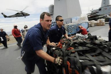 | Keywords: Flickr - Official U.S. Navy Imagery - USS Blue Ridge Sailors move supplies to support relief efforts in Japan following earthquake..jpg SOUTH CHINA SEA March 11 2011 Hull Technician 2nd Class Seneca Jernigan left and Yeoman 3rd Class Steven Tai move pallets of humanitarian assistance supplies across the flight deck of the U S 7th Fleet command ship USS Blue Ridge LCC 19 during an underway replenishment with the Military Sealift Command fleet replenishment oiler USNS Rappahannock T-AO 204 not pictured Blue Ridge is ensuring the crew is ready if directed to assist with earthquake and tsunami relief operations in Japan U S Navy photo by Mass Communication Specialist 2nd Class Aaron M Pineda /Released http //www flickr com/photos/usnavy/5523449678/ USS Blue Ridge Sailors move supplies to support relief efforts in Japan following earthquake 2011-03-11 15 08 http //www flickr com/people/56594044 N06 Official Navy Page from United States of America MC2 Aaron Pineda/U S Navy Attribution License IPTC Source Navy Visual News Service 10 42057 111 692146 source Flickr PD-USGov-Military-Navy Official U S Navy Imagery http //flickr com/photos/56594044 N06/5523449678 2012-11-15 15 57 36 cc-by-2 0 Images from United States Navy to check |