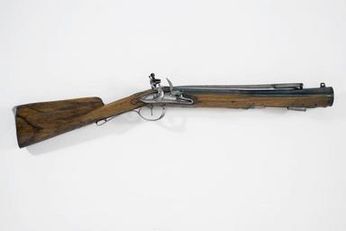 | Keywords: Flintlåsmuskedunder - Livrustkammaren - 65347.jpg Rund vid kammaren åttsidig blånerad pipa kraftigt utvidgad mot mynningen kanterna på kammarens främre del fasade vid övergången mellan den kantiga och runda delen en konvex och en konkav ring På kammaren punsad rankdekor delvis otydlig med rester av förgyllning På kammarens undersida stämplat A och AR Svansskruv med oblånerat blad framför krysskruvens hål hållare för bajonetten <br/>Fästning Två häften Pipan fäst med blånerad krysskruv samt två pipstift av stål <br/><br/>Flintlås med välvt låsbleck fasade kanter vid batterifjädern Graverad signatur på nederkanten RAINKIN Starkt svängd s-formig hane med blånerad lös överkäke blånerad päronformig käkskruv med genomgående hål och plan översida med skruvspår Rundad fängpanna med fals hög eldskärm Batteri med eldstål med åsad rygg batterifjäder med rulled Blånerad avtryckarstång <br/>Fästning och avtryckare Två blånerade låsskruvar <br/>Böjd avtryckare <br/><br/>Helstock av valnöt med kolv med 8-formigt tvärsnitt snidad rankdekor vid svansskruvbladet Beslag av stål bakplåt med konturerad tunga på kolvryggen två skruvar Helt välvt konturerat sidbleck med försänkta spetsar Två rundade rörkor konturerad stolpe förstärkningsplatta vid övergången Bygeln baktill övergående i lång delvis fri bakre arm med konturerad avslutning original caption flintlåsmuskedunder - LRK 10006<br/> Nyckelord Flintlåsmuskedunder Föremålsbild ca other date - 1750 1800 walnut e3 - eldvapen - stock material valnöt - steel Färg blå e127 - eldvapen - pipa lås och stockbeslag material stål size mm 819 g 2770 size mm 44 inre size mm 415 pipa LRK A anv e1 - eldvapen - pipa; Rainkin A R anv e1 - eldvapen - pipa; Rainkin RAINKIN anv e2 - eldvapen - lås; Rainkin A R anv e1 - eldvapen - pipa; Rainkin A anv e1 - eldvapen - pipa; Rainkin RAINKIN anv e2 - eldvapen - lås; Rainkin place of origin original filename lm_dig2179 46536 inventory number LRK 10006 65347 CC-BY-SA Göran Schmidt <gallery caption Different images of same object > File Flintlåsmuskedunder v sida - Livrustkammaren - 31108 jpg </gallery> Göran Schmidt Blunderbuss images from Livrustkammaren Media contributed by LSH dim-with multiple size templates Media contributed by LSH unmatched creator Media contributed by LSH unmatched keyword Color images from Livrustkammaren Media contributed by LSH 2013-10 |