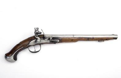 | Keywords: Flintlåspistol - Livrustkammaren - 39670.jpg Rund slätborrad pipa med kantig kammare mjuk övergång vid övergången samt 35 mm därframför profilerade ringar På kammarens undersida på v sidofas tre stämplar - ett järnmärke en stämpel med tre trianglar samt en otydligt stämpel Ö I vinkel böjt baktill tvärt avskuret svansskruvblad <br/>Riktmedel På svansskruvbladet ett lågt ståndsikte spolformigt korn av stål <br/>Fästning Ett ursprungligen två häften Pipan fäst med krysskruv samt ett pipstift i form av en avklippt smidd spik <br/><br/>Flintlås med välvt låsbleck nedanför fängpannan en stämpel M Rundad s-formigt svängd hane runda käkar något avtagna framtill med rak kant överkäken lös rundad hangren käkskruv med kulformigt huvud Rundad fängpanna med krage Batteri med välvd eldstålsrygg batterifjäder utan fasningar och löv <br/>Fästning Två låsskruvar <br/>Svagt svängd avtryckare med upprullad ände Avtryckarbleck med rundade ändara framför avtryckarens hål M-stämpeln <br/><br/>Helstock av brunt trä valnöt med snidade kantlister runt laddstocksnot spetsrörka och svansskruvblad Bakom sidblecekt inskuret T C ligatur 1041 Rundade beslag av stål Slät kolvkappa med långa flikar en fästskruv i centrum På h flik en otydlig X-liknande stämpel S-formigt svängt slätt sidbleck bredast på mitten Profilerad överrörka Slät svagt välvd varbygel bakre armen till kolvkappan främre armen svagt rombisk med rundad spets två fästskruvar <br/><br/>Tillbehör <br/>Laddstock av trä l 345 mm ursprunglig original caption flintlåspistol - LRK 20593 end other date century 17 steel e1247 - eldvapen - pipa lås riktmedel och beslag material stål - wood e3 - eldvapen - stock material trä size mm 545 size mm 360 pipa g 1337 LRK place of origin SE original filename lm_dig2381 57145 inventory number LRK 20593 39670 CC-BY-SA Göran Schmidt Göran Schmidt Flintlock pistol Images from Livrustkammaren Media contributed by LSH dim-with multiple size templates Color images from Livrustkammaren Media contributed by LSH 2013-10 |