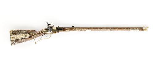 | Keywords: Flintlåsstudsare - Livrustkammaren - 100044.tif LSH artwork Johan David Höffer Hofer bössmed sv Åttsidig pipa med svag trumf lopp med åtta räfflor <br/>Riktmedel Inlaxade riktmedel ståndsikte av stål och stolpkorn av mässing <br/>Fästning Pipan fäst med krysskruv samt tre pipstift av stål <br/>Flintlås med plant låsbleck av mässing med hjullåsform graverad signatur I D HÖFFER A BERLIN Sparsamt ristad dekor runt låsbleckets fasade kanter Platt hane med motstöd yttre springkil hanskruven korsformigt graverad Kantigt eldstål medfilade spår på ryggen Eldstålsfjäderns nedre arm avslutad med långt flikigt fjäderlöv <br/>Fästning och avtryckare Två låsskruvar avtryckare med snälltryck <br/>Helstock av valnöt med rika inläggningar av ben Kolv av fransk typ med platt rygg Kolvlåda med lock av ben med ristad akantusdekor och mansfigur På anslaget trofégrupp Bakplåt av mässing med ristad dekor fäst med tre skruvar två på kolvryggen Kring kolvänden en fris med jaktmotiv kanoner hus lejon mansfigur samt akantusrankor bakänden stålskodd Stocken i övrigt dekorerad med inläggningar av tunna slingor rundlar figurgrupper med fanor och troféer mm På kolvens h sida två scener med Leda och svanen och Simson med lejonet Två rörkor av ben med ristade figurer på överrörkan en hjälmprydd man som lyfter sitt svärd på spetsrörkan en kvinnofigur med månskära i handen Diana På kolvens undersida en kvinna i böljande klädnad som sticker svärd eller dolk i ett naket barn som hon håller i famnen Bakåt utdragen varbygel av mässing ristat nummer LXVII och kantdekor kort bakre arm den främre något längre båda avslutas med bladflik På bakre stolpens undersida en knapp <br/>Tillbehör <br/>Laddstock 1 347 mm med framtill en skålad benskoning l 43 mm i andra änden ett invändigt gängat stålrör 1 144 mm original caption Flintlåsstudsare<br/> Nyckelord Flintlåsstudsare ca 1700 brass e247 - eldvapen - lås riktmedel och stockdekor material mässing - steel e12 - eldvapen - pipa och lås material stål - bone e8 - eldvapen - stockdekor material ben - walnut e3 - eldvapen - stock material valnöt size mm 1240 g 4320 size mm 849 pipa size mm 220 LRK I D HÖFFER ABERLIN Johan David Höffer Hofer place of origin Berlin original filename lm_dig9942 39487 inventory number LRK 2877 100044 CC-BY-SA Jens Mohr Flintlock firearms Muskets Jens Mohr Media contributed by LSH dim-with multiple size templates Media contributed by LSH unmatched creator Media contributed by LSH 2015-11 Color images from Livrustkammaren |