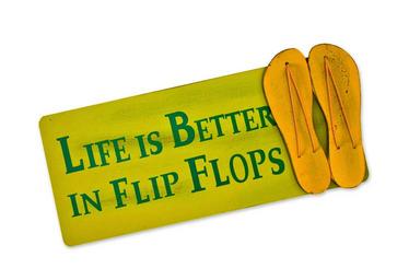 Keywords: flip flops shield postcard live better shoes funny greeting card pleasure decoration happiness friendly saying proverbs way of life summer