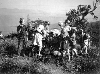 | Keywords: india mennonite board of missions mennoniteboardofmissions bihar eddy groff eddygroff loose tooth loosetooth garden playing play mary ina flisher maryinaflisher sylvia flisher sylviaflisher kenton beachy kentonbeachy lynette beachy lynettebeachy judy flisher judyflisher blackandwhite monochrome outdoor black and white Caption: Flisher and Beachy children with Eddy Groff in the garden. Eddy is removing a loose tooth, to surprise his mother! Citation: Mennonite Board of Missions Photographs, 1898-1967. IV-10-007.2 Box 4 Folder 11. Mennonite Church USA Archives - Goshen. Goshen, Indiana. Caption: Flisher and Beachy children with Eddy Groff in the garden. Eddy is removing a loose tooth, to surprise his mother! Citation: Mennonite Board of Missions Photographs, 1898-1967. IV-10-007.2 Box 4 Folder 11. Mennonite Church USA Archives - Goshen. Goshen, Indiana. |