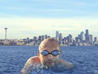 Keywords: float water swim seattle city skyline cityscape skyscraper milestone