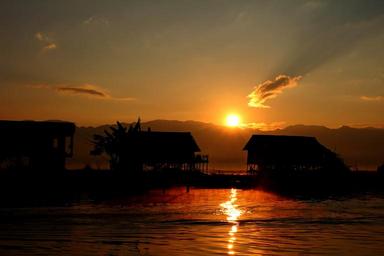 Keywords: floating house sunrise inle lake inle myanmar burma lake glowing sky asia sunlight water
