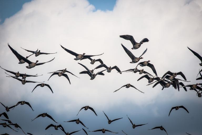 Keywords: flock of birds geese fly birds swarm migratory birds wild geese sky nature bird water bird flutter start