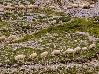 Keywords: flock row grass animal sheep