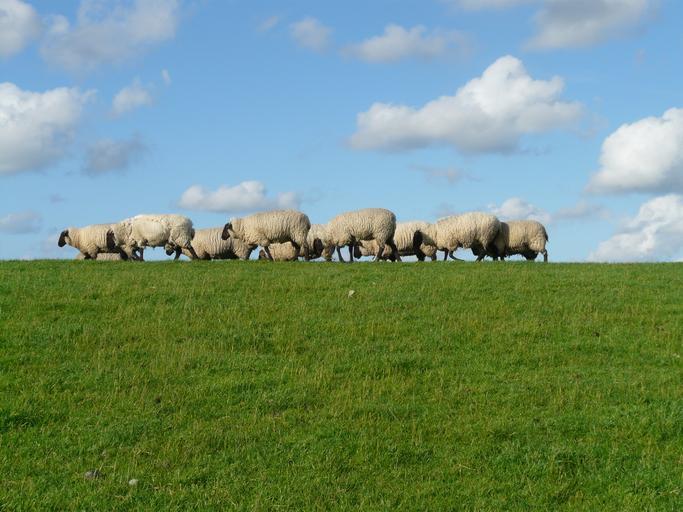 Keywords: flock of sheep group sheep graze wool rhön sheep dike meadow grass north sea landscape idyll rest relaxation fresh chill out