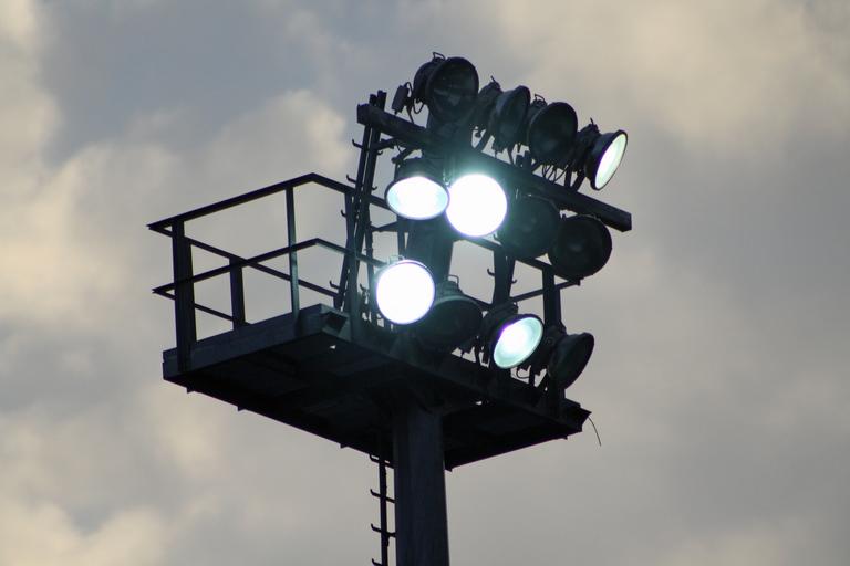 Keywords: flood light sky evening lighting pole lighting mast spotlight light football seem lamp stadium