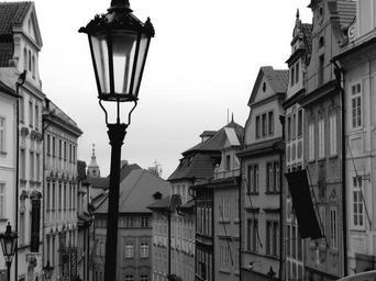 Keywords: floor lamp lantern city houses street