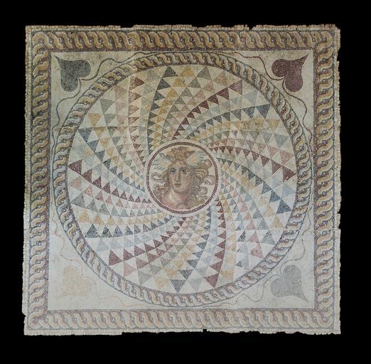 | Keywords: Floor mosaic garden NAMAthens.jpg en The whole floor mosaic with Medusa in the garden of the NAMAthens Greece fr La mosaïque de sol du IIème siècle représentant Méduse jardin du NAMAthènes Grèce institution National Archaeological Museum of Athens 2015-05-20 15 18 20 own Jebulon other versions cc-zero Uploaded with UploadWizard National Archaeological Museum of Athens - Mosaic in the garden Opus tessellatum Ancient Roman mosaics in Athens 2nd-century mosaics Black background Quality images by Jebulon QualityImage |