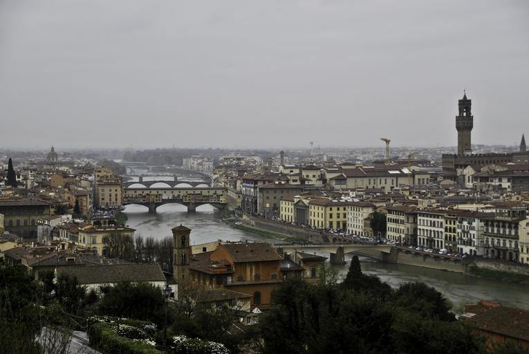 Keywords: florence after rain weather water wet town tourist classic cultural landmark house street roof sky river canal ancient culture old grey