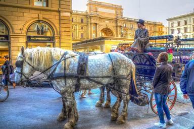 Keywords: florence italy horses horse and cart animal architecture outside market square sky stone