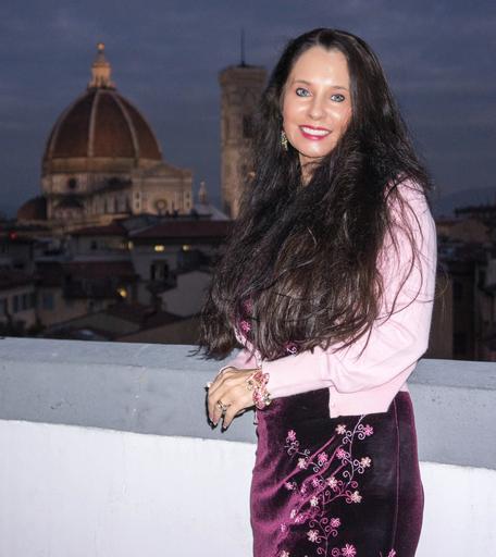 Keywords: florence italy night skyline duomo person people woman smiling happy white