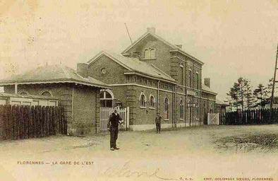 Keywords: Florennes est.jpg fr Florennes - la gare de l'Est nl Station Florennes-Est Florennes Belgium Old postcard Srs Colinvaux Florennes 1910 PD-art Florennes-Est train station