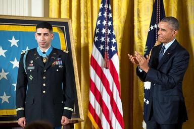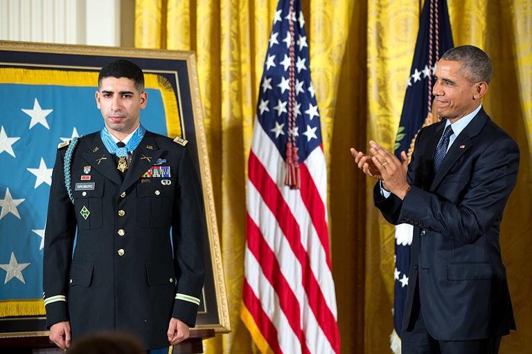 | Keywords: Florent Groberg awarded Medal of Honor.jpg en Retired Army Capt Florent Groberg is awarded the Medal of Honor by President Barack Obama at a White House ceremony Groberg is the first foreign-born Medal of Honor recipient of the War in Afghanistan and the 13th overall 2015-11-12 https //twitter com/POTUS/status/664853410135613440 Creator Pete Souza other versions PD-USGov Uploaded with UploadWizard Photographs of Army Medal of Honor recipients Photographs by Pete Souza Medal of Honor presentation ceremony for Florent Groberg Two men Men wearing neckties Photographs of military people in uniform |