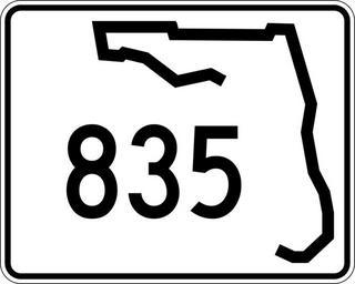 Keywords: Florida 835.svg 30 in by 24 in 750 mm by 600 mm Florida State Road shield made to the specifications of the http //www dot state fl us/rddesign/rd/RTDS/17355s1-12of12 pdf sign detail Uses the http //www triskele com/fonts/index html Roadgeek 2005 fonts United States law does not permit the copyrighting of typeface designs and the fonts are meant to be copies of a U S Government-produced work anyway The outside border has a width of 1 1/16 in and a color of black so it shows up; in reality signs have no outside border Note that the drawing does not provide the border width or curve radii The previous page does but seems very inaccurate Thus those measurements are approximated from the drawing The state outline is extracted from the PDF and cleaned up to make the inside match the outside own SPUI spuiother Florida State Road shields 835 835 number