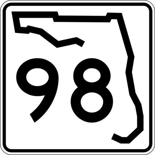 Keywords: Florida 98.svg 24 in by 24 in 600 mm by 600 mm Florida State Road shield made to the specifications of the http //www dot state fl us/rddesign/rd/RTDS/17355s1-12of12 pdf sign detail Uses the http //www triskele com/fonts/index html Roadgeek 2005 fonts United States law does not permit the copyrighting of typeface designs and the fonts are meant to be copies of a U S Government-produced work anyway The outside border has a width of 1 1/16 in and a color of black so it shows up; in reality signs have no outside border Note that the drawing does not provide the border width or curve radii The previous page does but seems very inaccurate Thus those measurements are approximated from the drawing The state outline is extracted from the PDF and cleaned up to make the inside match the outside own SPUI spuiother Florida State Road shields 098 98 number |