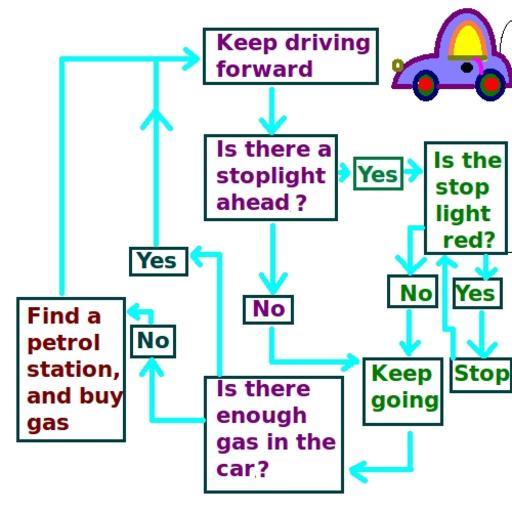 | Keywords: Flowchart Showing Driving to a Goal.png en Driving across town to reach a specific goal can be modeled using a flowchart like this one It is a constant mental process of adjustment; if a stoplight is red one must stop; if gas is needed the tank must be re-filled The ideal situation is when a human is making intelligent adjustments based on reality while keeping the longer-term goal in view Source of diagram here see public domain declaration at top Questions write me at my Wikipedia talk page or email me at thomaswrightsulcer yahoo com own Tomwsulcer 2010 Flowchart Showing Driving to a Goal he png http //knol google com/k/mentally-healthy-mind Goal 282D 29oriented_behavior Note; this file is supposed to replace the jpg version File Flowchart Showing Driving to a Goal jpg This file is in png format Cc-zero Driving Flow charts |