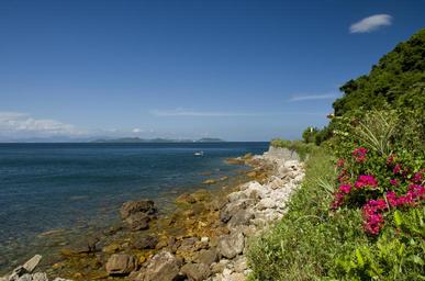 Keywords: flower alpine hills sea view sea mountain blue sky
