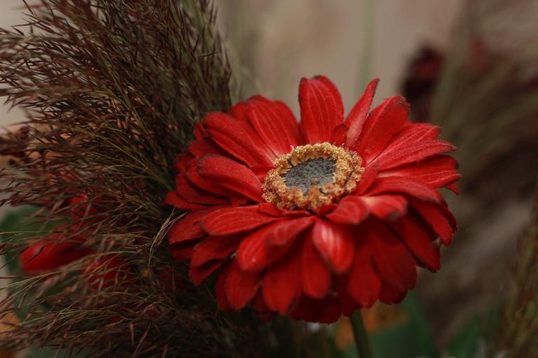 Keywords: flower artificial flowers still life bouquet gerberas red bouquet of flowers inside a flower closeup cut flower