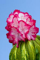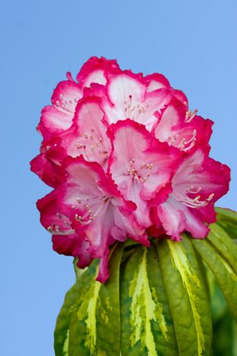 Keywords: flower beautiful nature pink bright blue sky background colorful bloom floral petals pretty green leaves