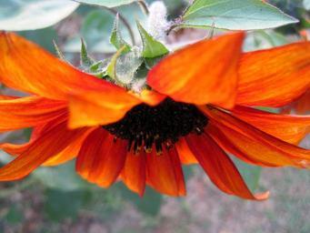 Keywords: flower bloom facing down petals orange-red seeds black bold garden