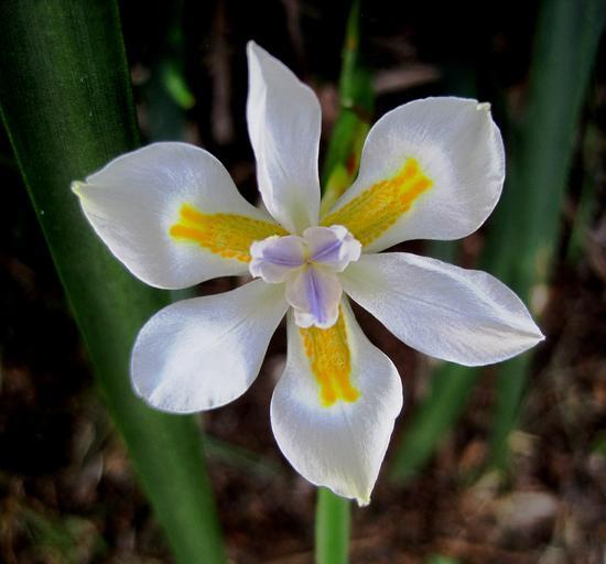 Keywords: flower bloom iris wild small white pure markings yellow lilac garden