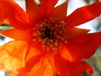 Keywords: flower bloom pomegranate orange tanslucent light stamen garden