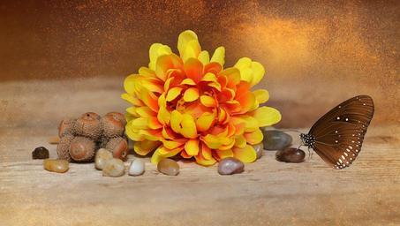Keywords: flower blossom bloom art flower fabric flower yellow stones butterfly wood deco decoration decorative painting digital painting