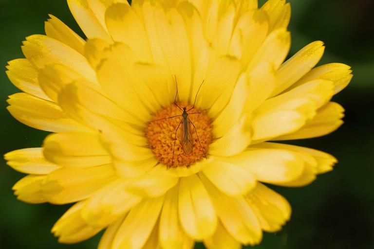 Keywords: flower blossom bloom plant yellow insect macro close summer flower color yellow flower fly