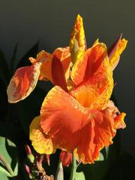 Keywords: flower blossom orange and yellow petals flora iris vibrant sunset colors garden flower copatonic