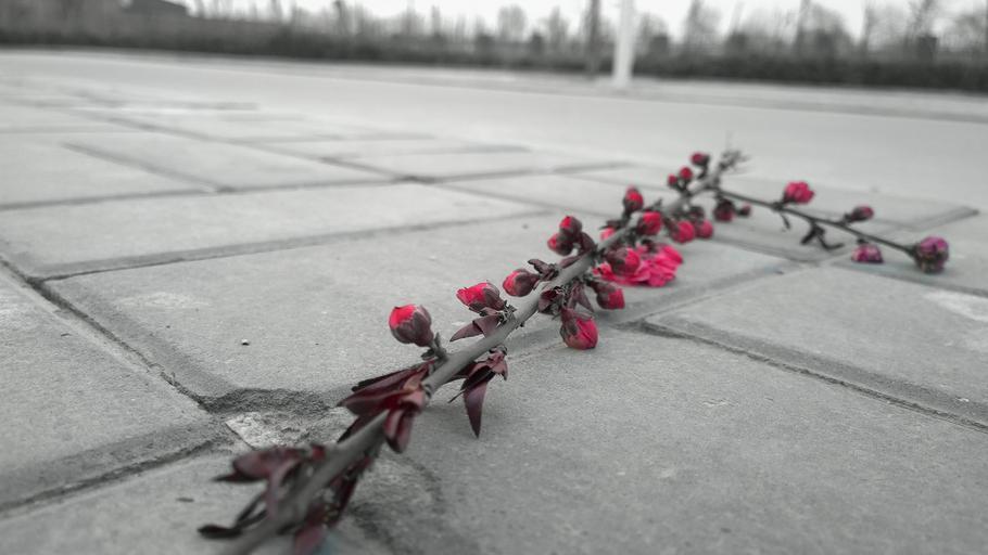 Keywords: flower broken branch branch roadside abandoned peach withers die