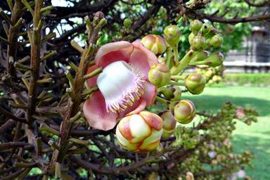 Keywords: flower buds couroupita guianensis cannonball tree nagkeshar halebidu india