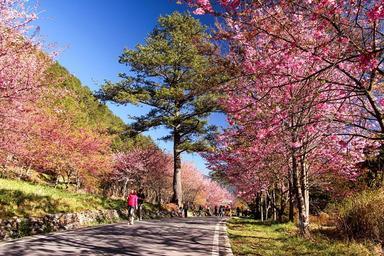 Keywords: flower cherry blossoms pink landscape plant road