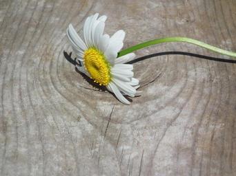 Keywords: flower daisy white flowers day petal sheet bloom summer yellow closeup white flowers chamomile board wood brown