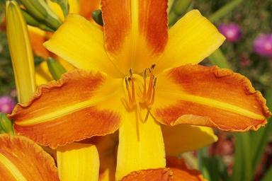 Keywords: flower daylily bicolor yellow red garden plant floral bloom nature petal