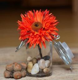 Keywords: flower fabric flower art flower orange blossom bloom decorative glass jar stones deco decoration decorative close