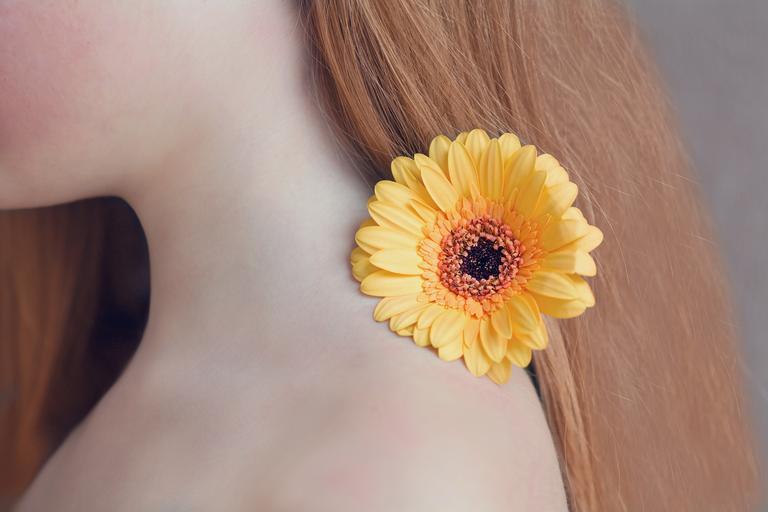 Keywords: flower gerbera yellow yellow flower schnittblume blossom bloom petals body shoulder hair close