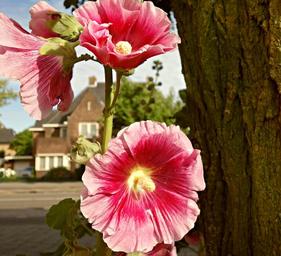 Keywords: flower hollyhock common hollyhock bloom alcea tree urban setting pink