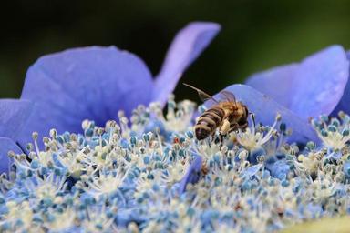 Keywords: flower hydrangea bee garden blue nature summer grove
