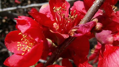 Keywords: flower japanese quince cold nature winter red garden landscape shrub gardens