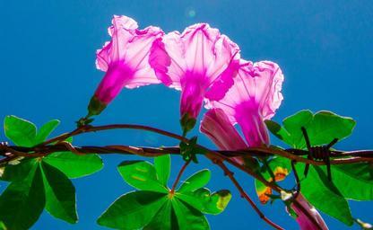 Keywords: flower light plant contrast backlight barbed wire