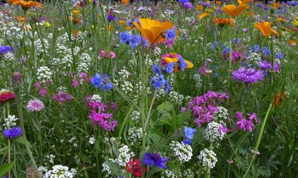 Keywords: flower meadow farbenpracht flowers yellow blue violet summer colorful