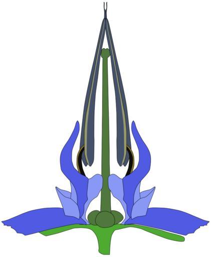 | Keywords: Flower morphology - Flower lateral view some pieces removed - gynobasic style position epipetalous stamen Boraginaceae.svg es Morfología de la flor de Boraginaceae Borago officinalis vista lateral de la flor con algunas piezas removidas Se observa el gineceo de posición ginobásica del estilo que lo divide en 4 lóbulos el estigma bilobado los estambres epipétalos insertos a mitad del pétalo dos pétalos celeste y azul dos sépalos verde claro Dibujado a partir de diagrama en http //www botany wisc edu/garden/UW-Botanical_Garden/Boraginaceae html 2013-07-11 10 49 58 own RoRo cc-zero Uploaded with UploadWizard Borago officinalis - botanical illustrations Flower diagrams |