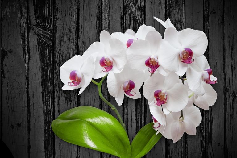 Keywords: flower orchis orchid plant flower room oriental flower boards the petals white pink foliage green wallpaper decoration black