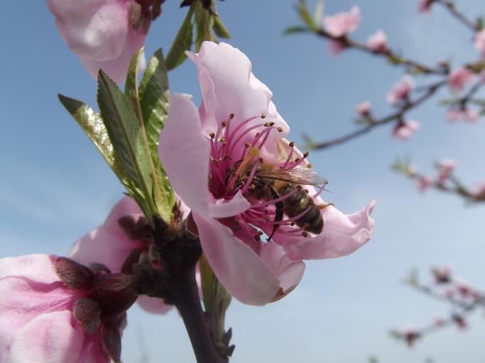 Keywords: flower peach blossom bee close macro nature beautiful pink pink flower plant spring