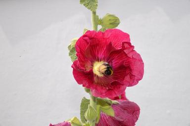 Keywords: flower pink hollyhock bee