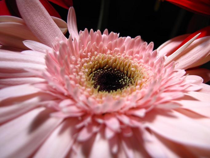 Keywords: flower pink petals heart yellow and black flora plant gerberra nature macro green botany plants garden flowering wallpaper