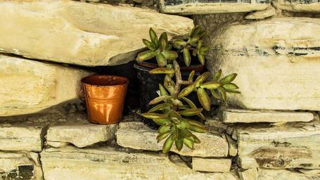 Keywords: flower pot wall stone decoration village cyprus kato lefkara