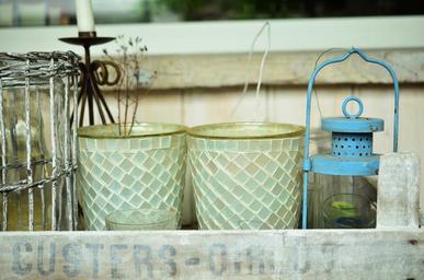 Keywords: flower pots country house style decoration balcony mosaic box wood lantern still life blue white of course rustic